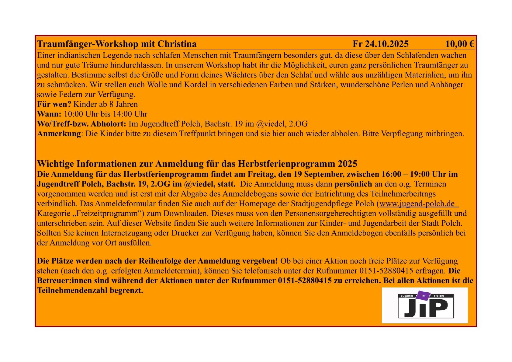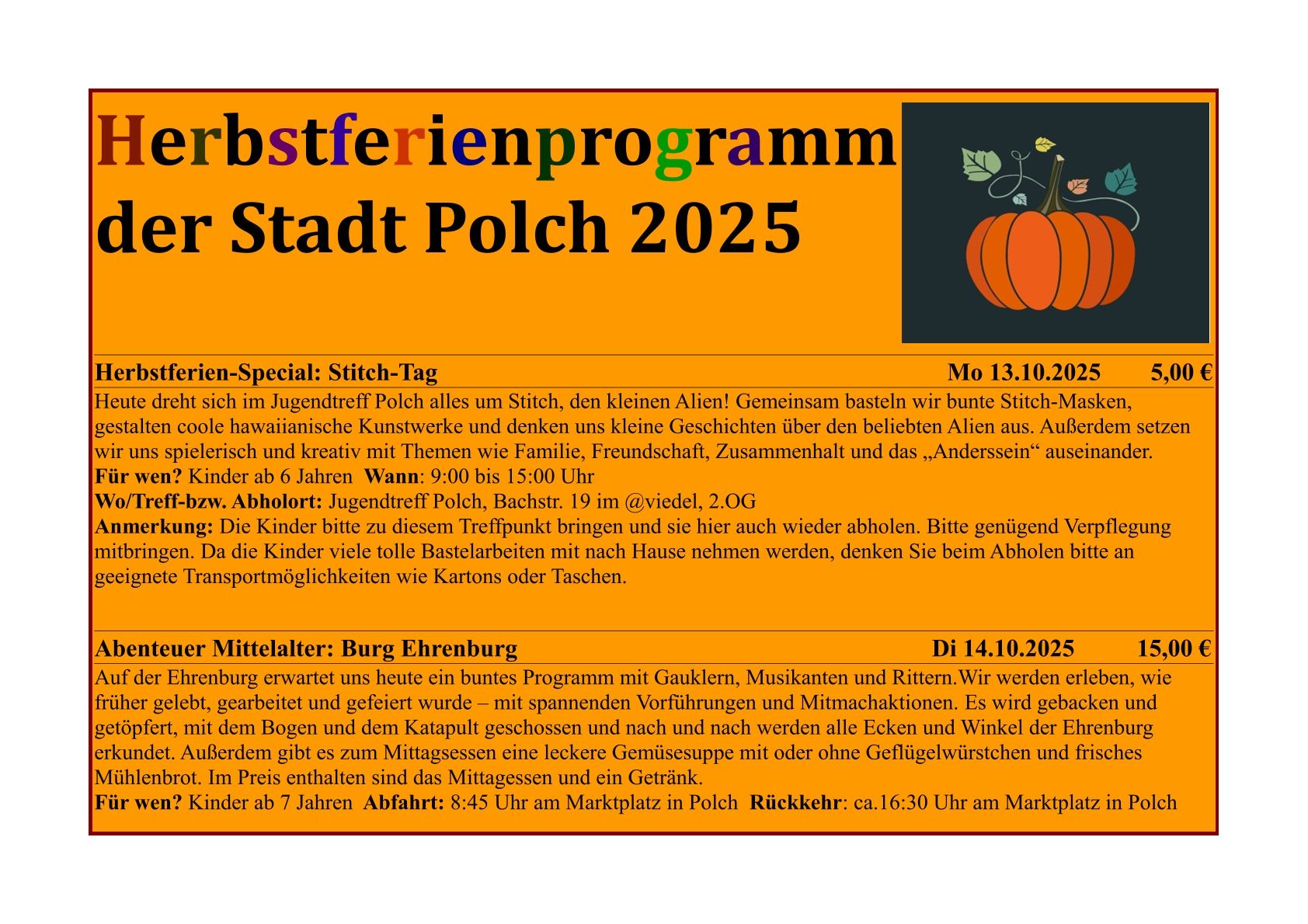 Anmeldeformular Herbstferienprogramm Polch 2025